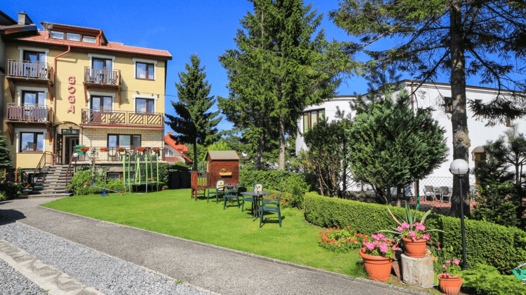Do dyspozycji jest również duży ogród, bezpieczny plac zabaw dla dzieci oraz parking na wyłączność Gości.