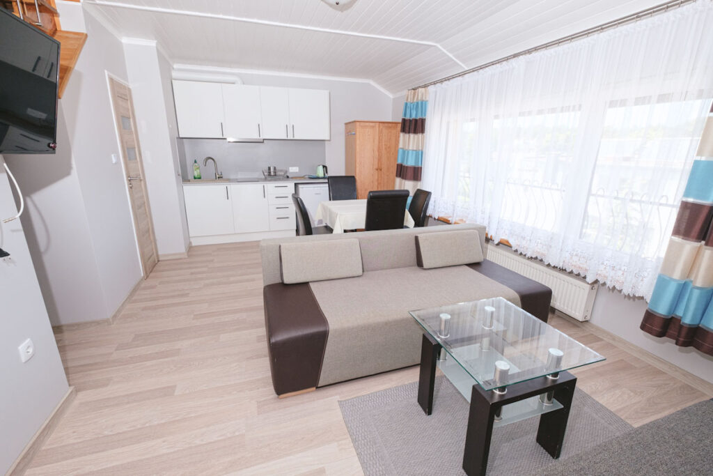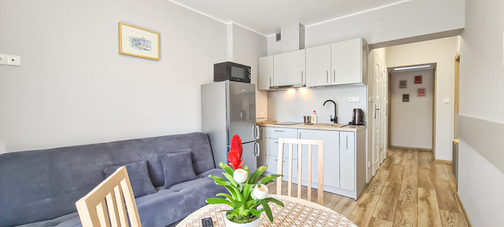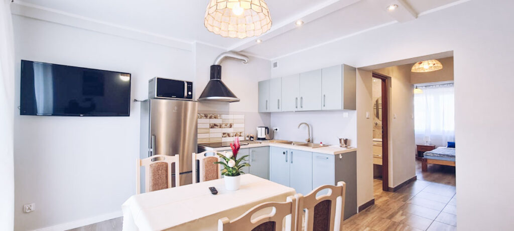W obiekcie dla gości jest dostępna kuchnia ogólnego użytku, świetlica – jadalnia, stanowisko do prasowania, rower stacjonarny, biblioteka, kącik zabaw dla małych dzieci.