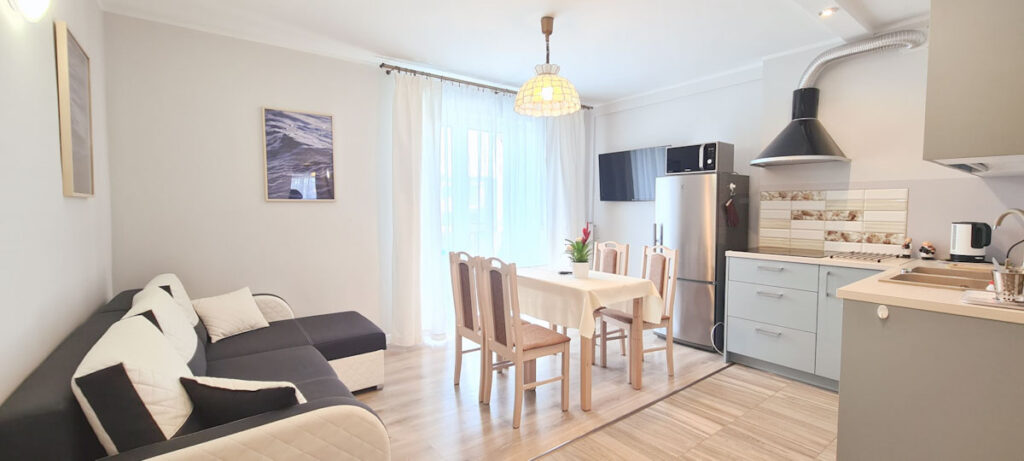 Obiekt położony jest zaledwie 250 metrów od morza, w kameralnej i cichej dzielnicy Jastrzębiej Góry.